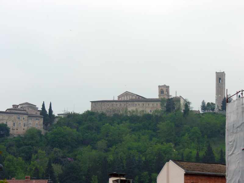 Sforza e in seguito divenne sede vescovile. Da vedere: Piazza del Popolo (antica piazza del mercato) sulla quale si affacciano il palazzo Comunale (1700), il cinquecentesco palazzo Gentili, il teatro neoclassico Feronia, i palazzi cinquecenteschi di Caccialupi e di Servanzi-Collio, la chiesa della Misericordia (1300 rimaneggiata nel 1700), la chiesa rococo' di San Giuseppe (XVIII sec.); in via Salimbeni il duecentesco duomo nuovo (rifatto piu' volte) con l'interno rococo', il palazzo Tacchi.Venturi (1400) con il museo archeologico e la pinacoteca, la trecentesca di San Lorenzo in Doliolo con campanile gotico e la cripta affrescata; la duecentesca chiesa di San Domenico; la neoclassica San Paolo al Ponte; la porta delle sette cannelle (XIV sec.) dalla quale si accede al borgo detto castello; la trecentesca torre comunale posta sul muro di cinta del monastero delle clarisse; il duomo vecchio (XI sec.). Anche in questo paese ci sono diverse possibilita' di sosta, noi abbiamo optato per l'area adiacente agli impianti sportivi, in viale Mazzini (800 m. dal centro), con scarico, acqua e allaccio elettrico (quest'ultimo a pagamento). |