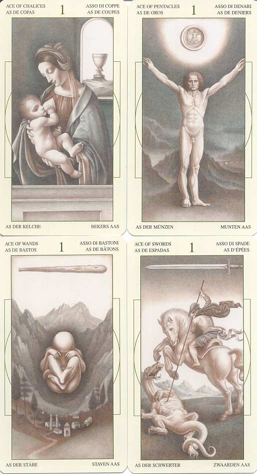 Mazzo da 52 arcani minori e 22 arcani maggiori Immagini tratte da affreschi di Leonardo Da Vinci Stampato da Lo Scarabeo