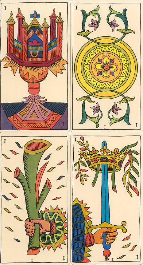 Mazzo da 23 arcani maggiori e 42 arcani minori (i semi di bastoni, spade e coppe partono dal 5 mentre denari ha anche il 4 e l'asso) Dimensioni cm. 8,5 x 5 Stampato da Modiano